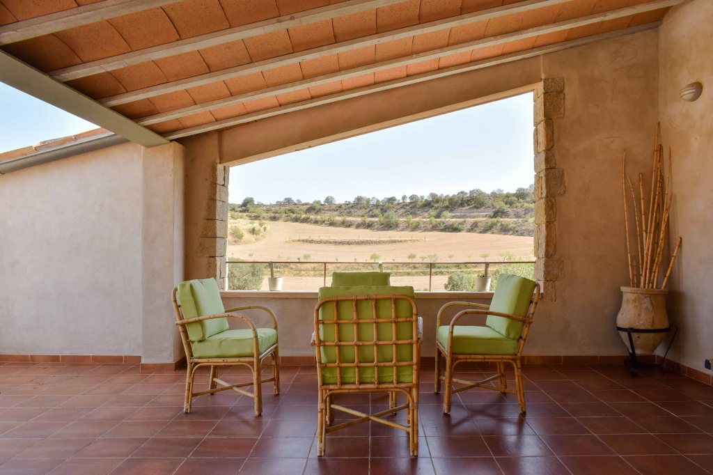 Entrada independiente y acceso a una gran terraza ofreciendo vistas sobre el campo.